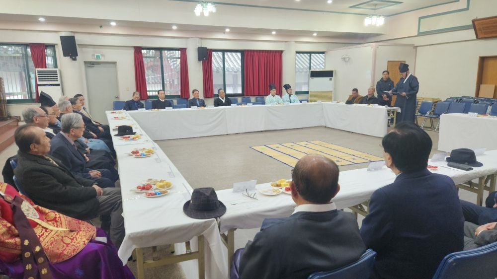 행사는 국민의례와 문묘 향배를 시작으로 참석자 소개, 상호 간의 합동 세배(단배식), 신년사 및 축사, 덕담 교환, 오찬 순으로 진행되었습니다. 참석한 유림들은 의관을 정제하고 서로 마주 보며 정중히 배례함으로써, 경로효친의 미풍양속을 되새기고 유림 사회의 결속을 다졌습니다.