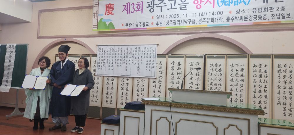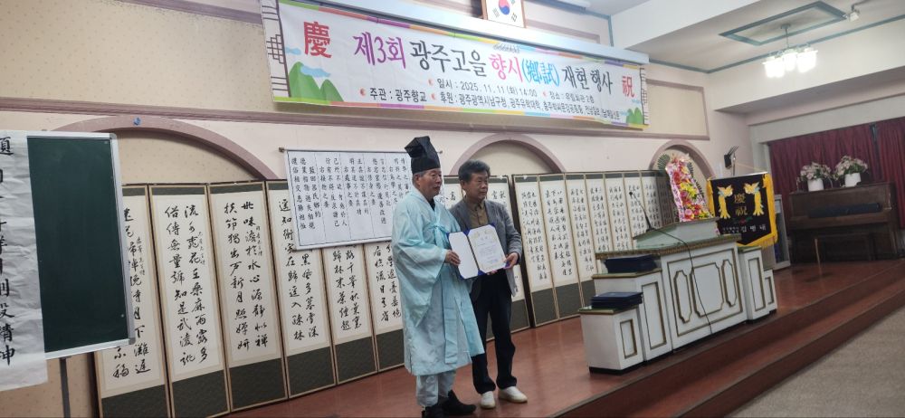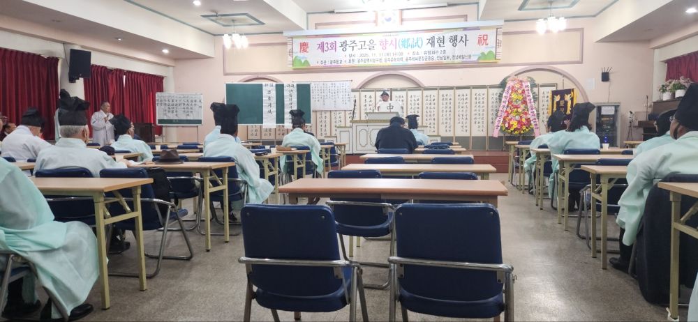 광주향교(전교 기호석)는 조선시대 인재 등용문이었던 향시(鄕試)를 현대적으로 재현하는 ‘제3회 광주고을 향시 재현 행사’가 11월 11일(화) 광주향교 유림회관 2층에서 성황리에 개최되었다.