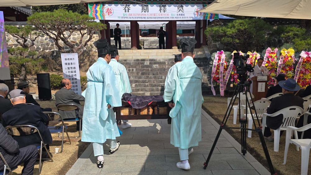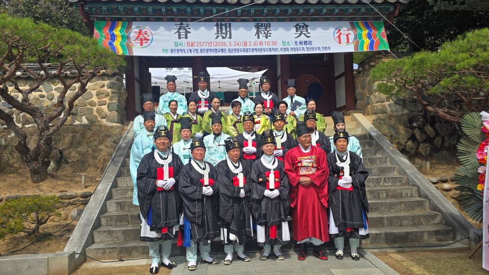 광주향교(전교 기호석)는 3월 24일(화) 오전 10시 30분, 향교 내 대성전 일원에서 유림과 일반 시민 등 350여 명이 참석한 가운데 ‘공기 2577년(2026년) 춘기석전(春期釋奠)’을 엄숙하게 봉행하였다